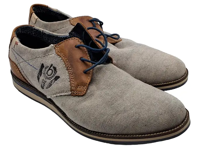 Herren Schnürschuhe Gr. 44 Beige Canvas Leder Freizeitschuhe