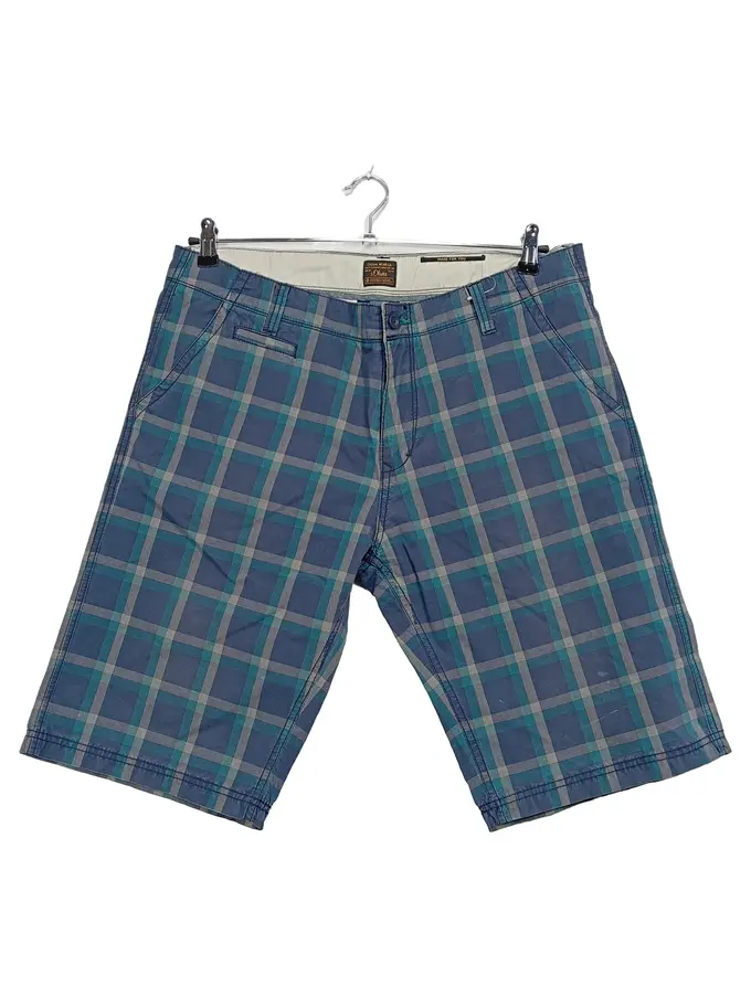 Herren Shorts kariert Blau Gr. L W33 Baumwolle Casual