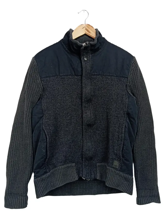 Zustand: Sehr gut Material: Wolle / Polyester / Baumwolle / Polyamid Farbe: Grau Herren Strickjacke