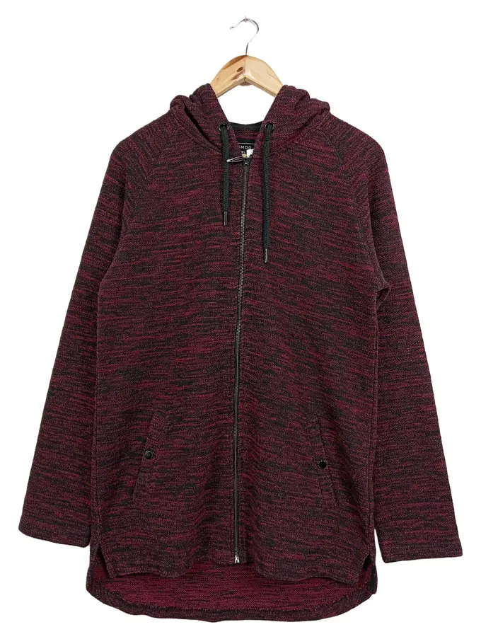 Herren Sweatjacke Gr. 52/L Rot Meliert Kapuze Reißverschluss Casual Urban