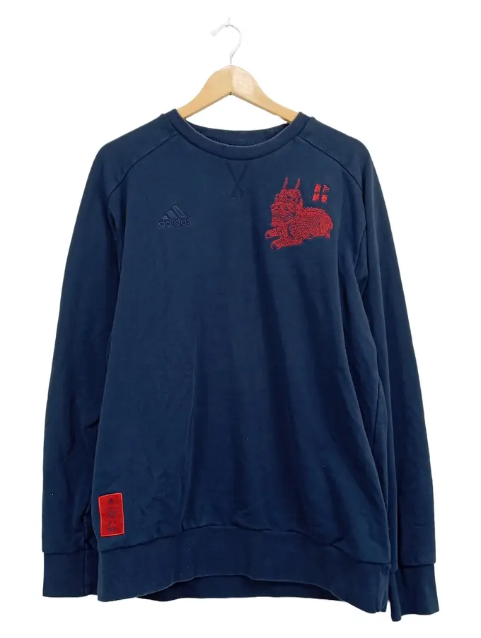 Herren Sweatshirt Pullover Blau Gr. XL Tiger-Print Streetwear