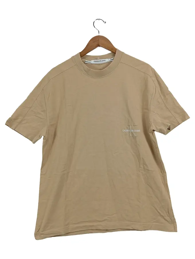 Herren T-Shirt Beige S Logo Print Baumwolle Casual