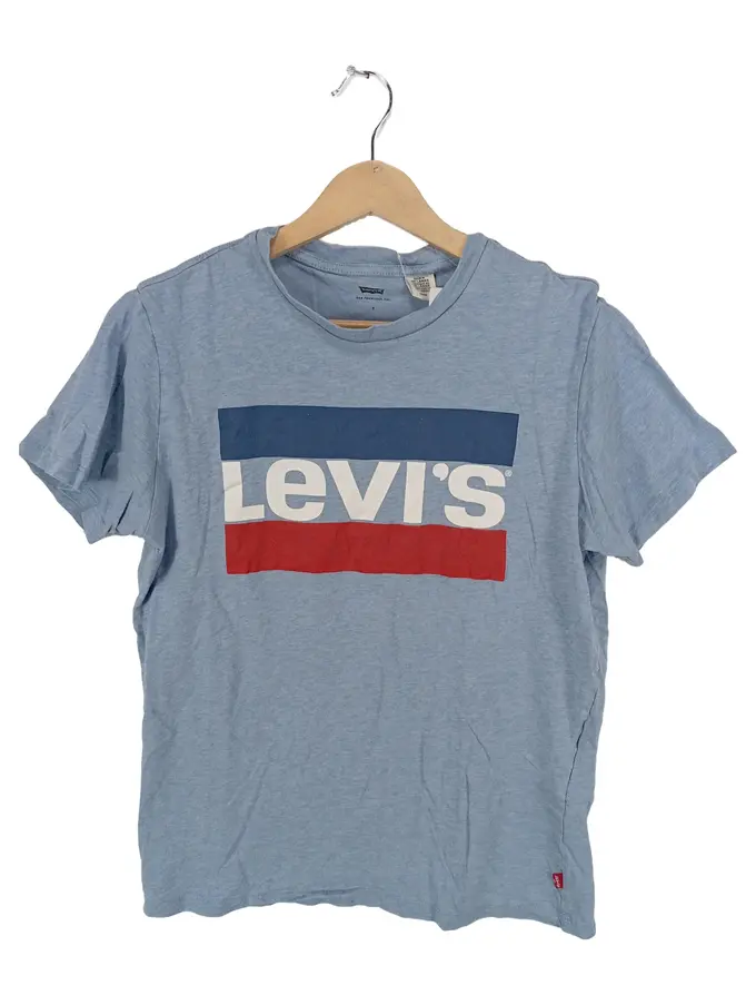 Herren T-Shirt Gr. 46, S Blau Logo-Print Casual Baumwolle