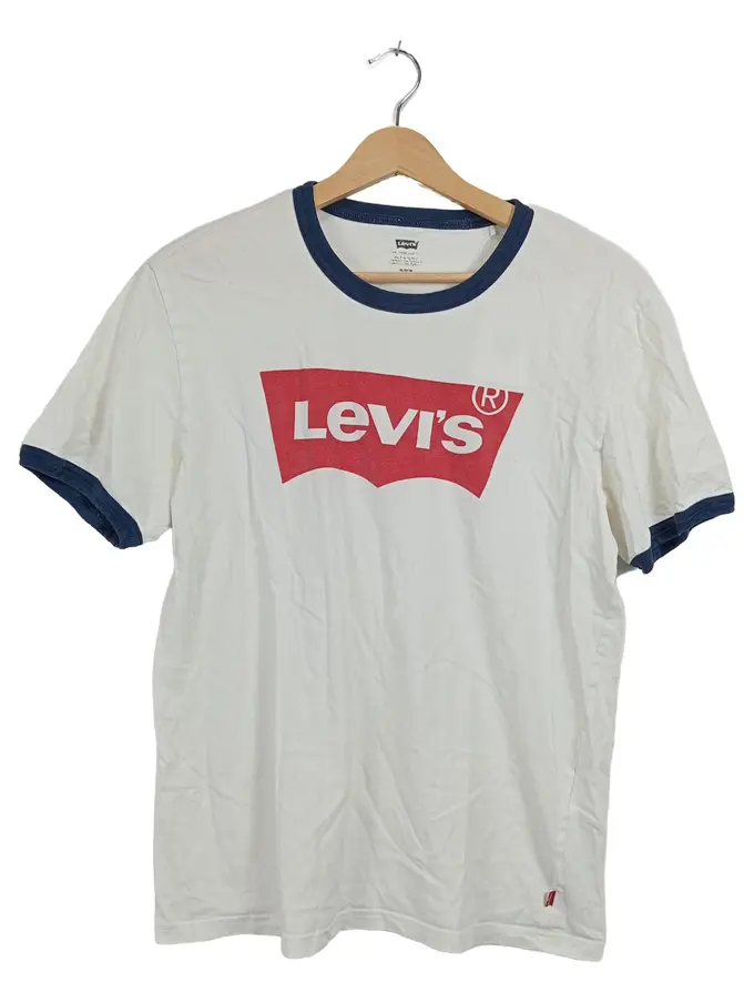 Herren T-Shirt Gr. M Weiß Logo-Print Ringer Baumwolle