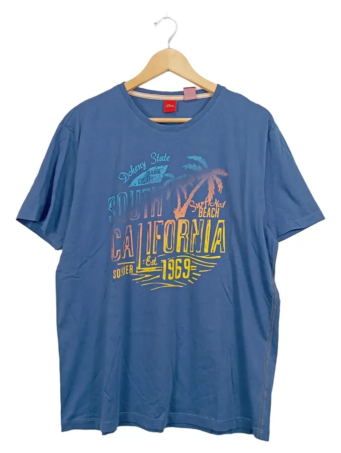 Herren T-Shirt Grafik Print Blau Gr. XL 100% Wolle