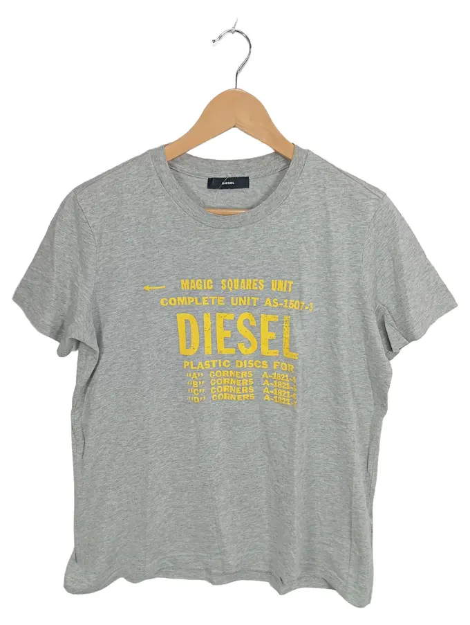 Herren T-Shirt Grau Gr. XL Logo Print Baumwolle Casual