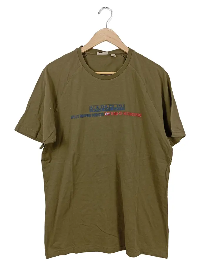 Herren T-Shirt Grün Gr. 52/L Casual Sportlich Logo-Print