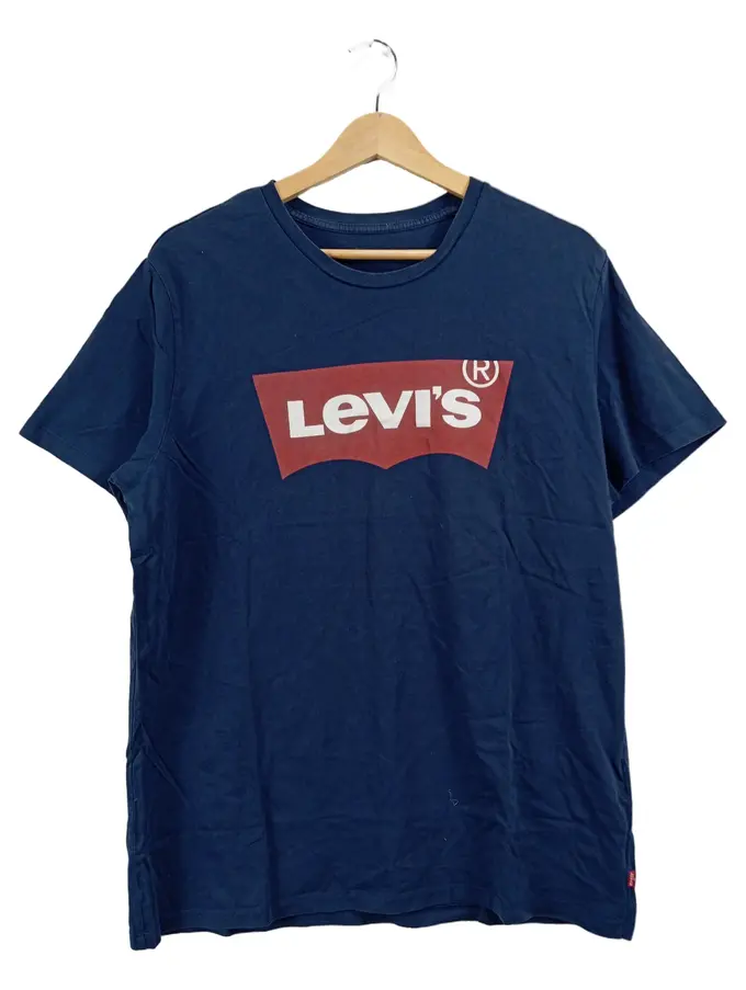 Herren T-Shirt Logo-Print Navy Blau Gr. L Batwing