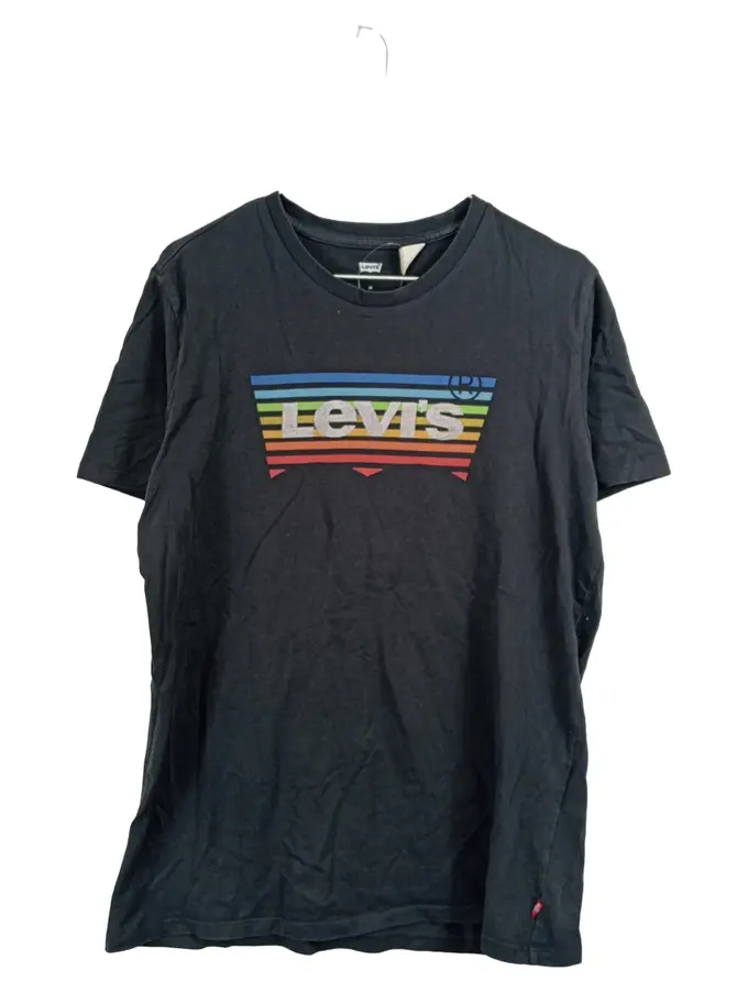 Herren T-Shirt Logo Regenbogen Streifen Grau Gr. M