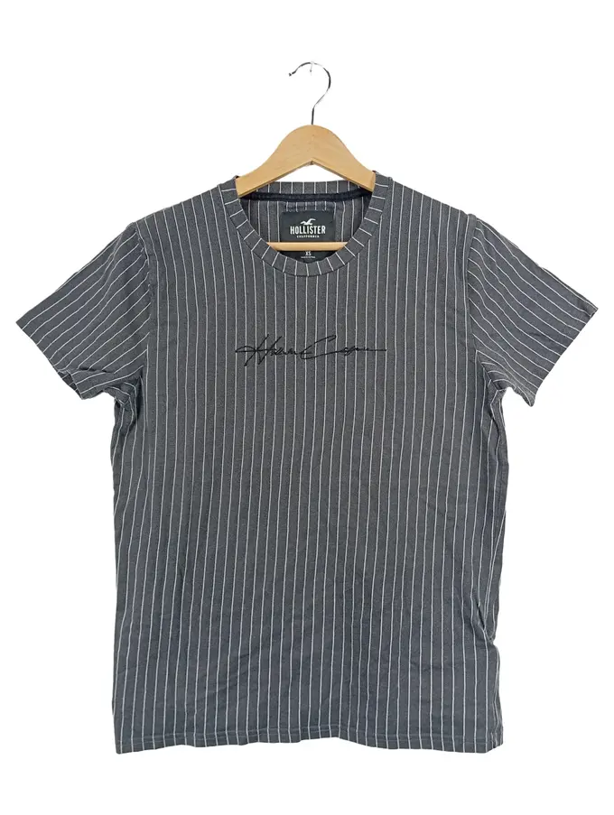 Herren T-Shirt Nadelstreifen Grau XS Baumwolle Casual