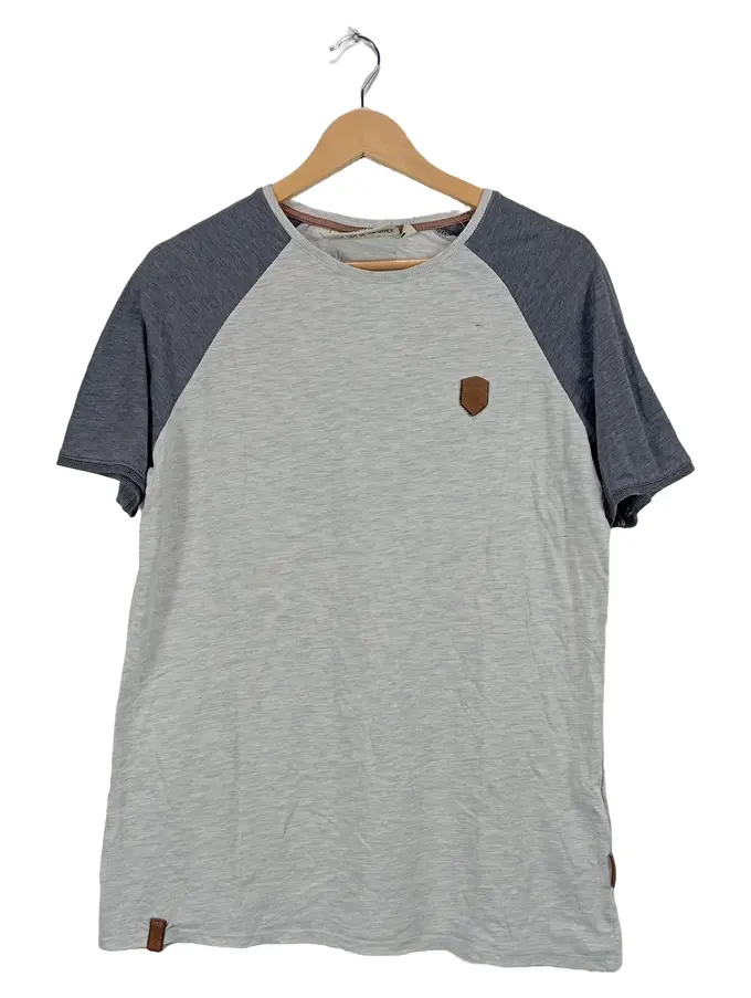 Herren T-Shirt Raglan Gr. M Grau Meliert Lederdetails