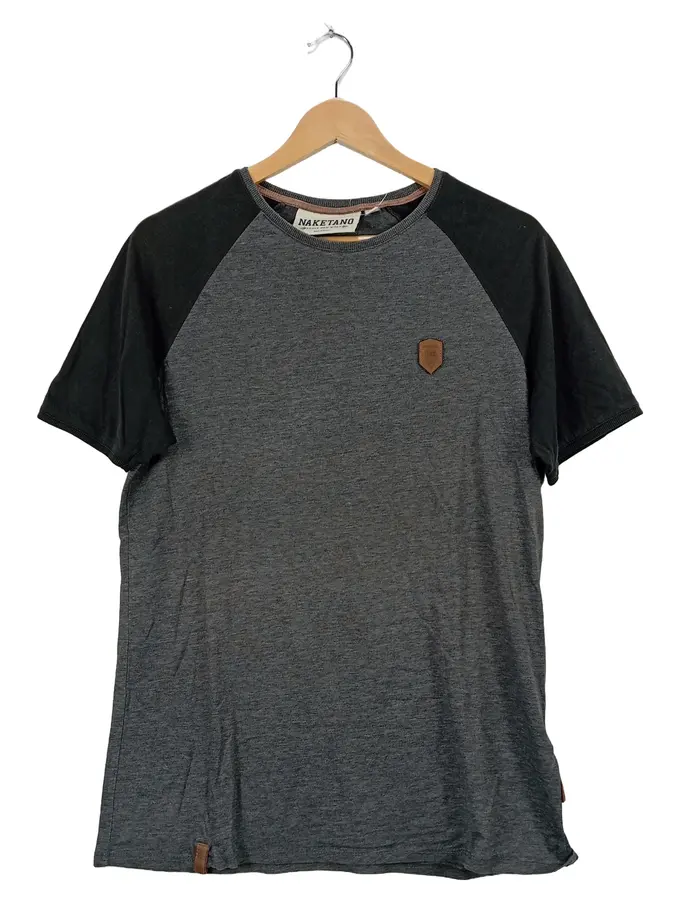 Herren T-Shirt Raglan Gr. M Grau Schwarz Meliert Lederdetails