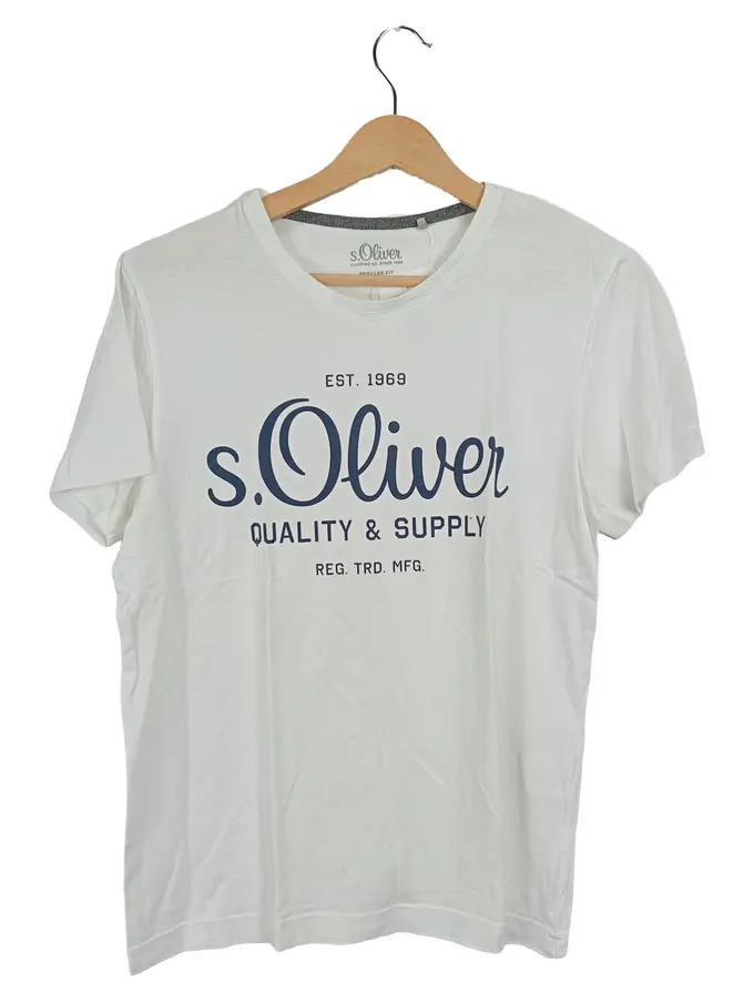 Herren T-Shirt Weiß Gr. 46/S Casual Logo-Print Baumwolle