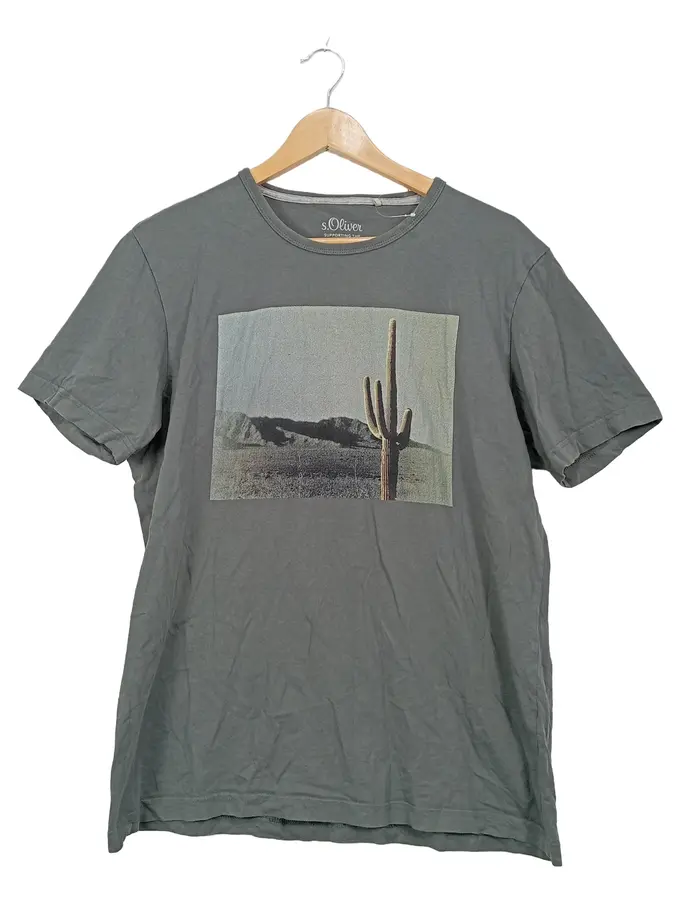 Herren T-Shirt XL Grau Kaktus Wüsten Print Baumwolle Casual