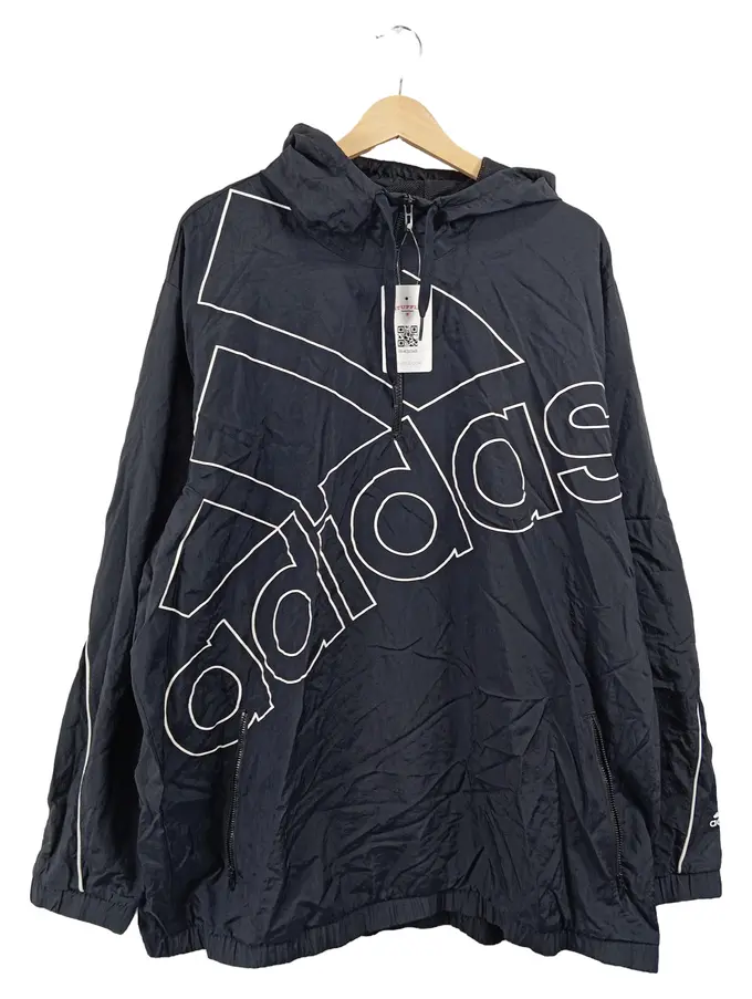 Herren Windjacke Kapuze Großes Logo Schwarz Größe 2XL