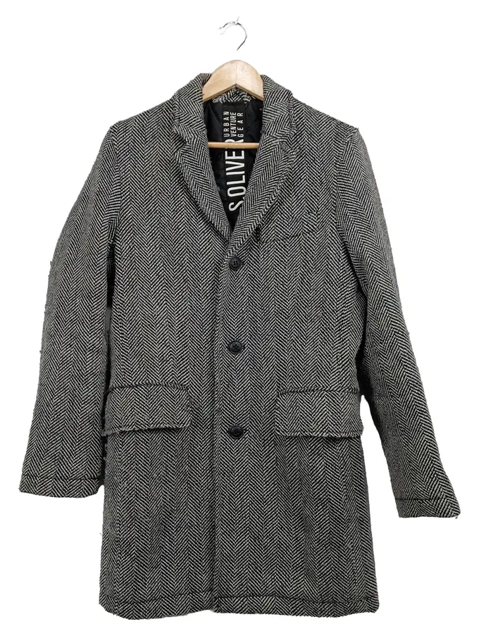 Herren Wollmantel Gr. S Fischgrätenmuster Grau Klassisch