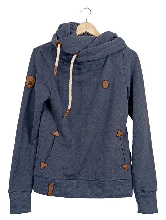Hoodie Damen Kapuzenpullover Gr. M Blau Meliert Lederdetails