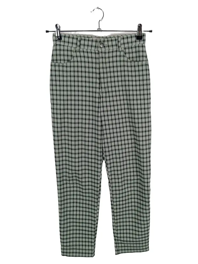 Hose Damen W28 L28 Grün Kariert High Rise Stretch Stoffhose Casual