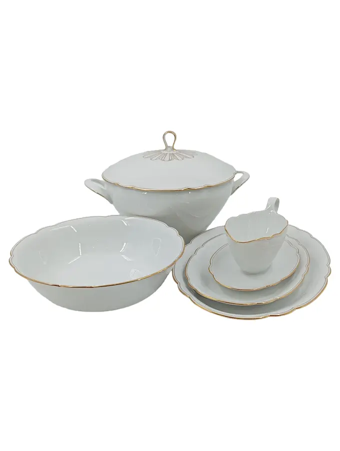 IN Ka Speiseservice Porzellan Weiß Goldrand Elegant