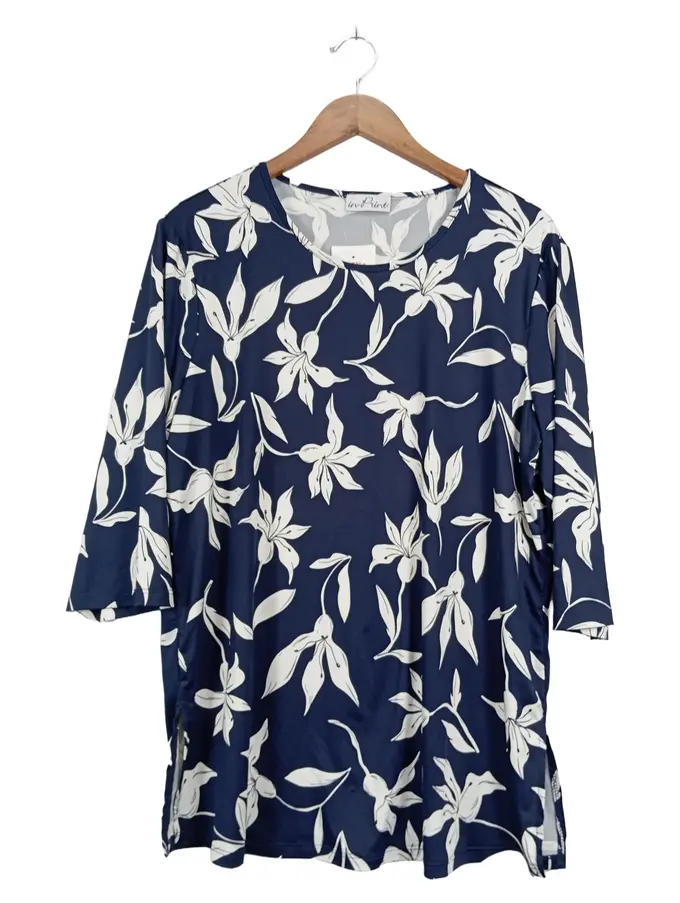 InPrint Damen Bluse Blumenmuster Blau Weiß 3/4-Arm Gr. M