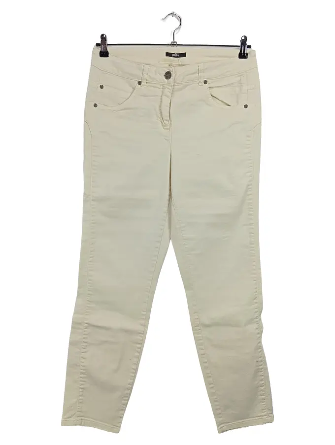 Jeans Slim Fit Damen Hose Beige Gr. 44 Baumwolle Stretch Alltag