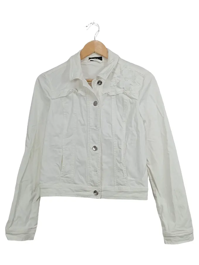 Jeansjacke Damen Weiß Gr. 36 Baumwolle Stickerei Freizeit