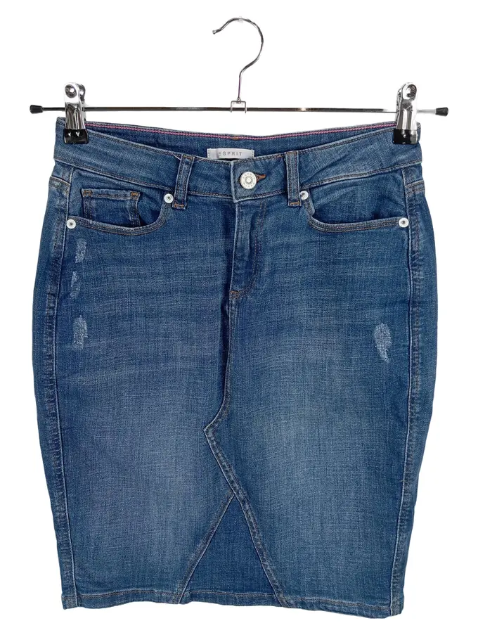 Jeansrock Damen Gr. 34 Blau Midi Used Look Stretch