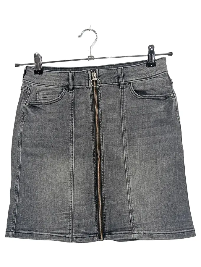 Jeansrock Damen Gr. 34 Grau Reißverschluss Mini