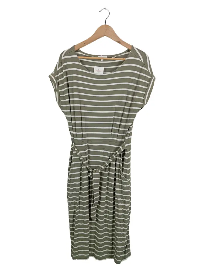 Jerseykleid Damen Gr. 40 Oliv Gestreift Freizeitkleid Viskose