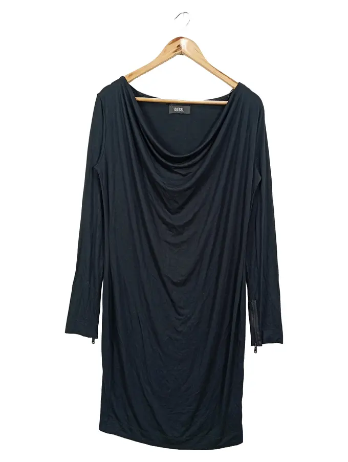 Jerseykleid Elegant Schwarz Gr. 38/M Viskose Midi Reißverschluss