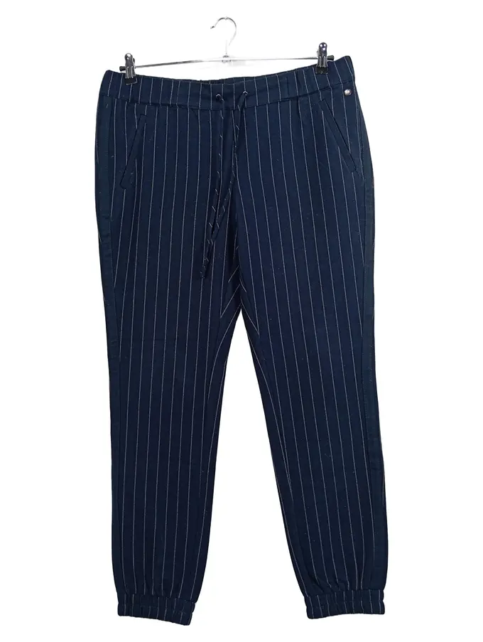 Jogger Pants Damen Stoffhose Gestreift Blau Gr. 42 XL