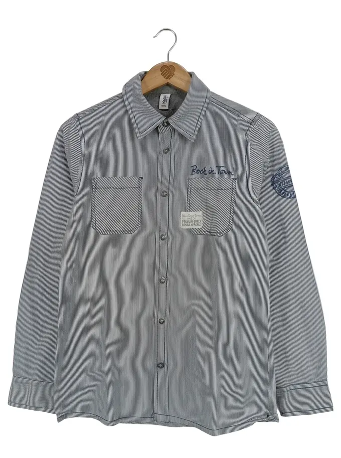 Jungen Freizeithemd Gr. 158/164 Gestreift Langarm Baumwolle Grau