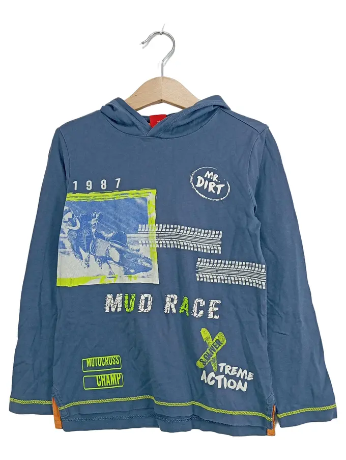 Jungen Langarmshirt Kapuze Mud Race Motocross Gr. 116/122 Blau