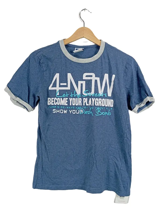 Jungen T-Shirt Gr. 146/152 Blau Streetwear Print 4-NOW