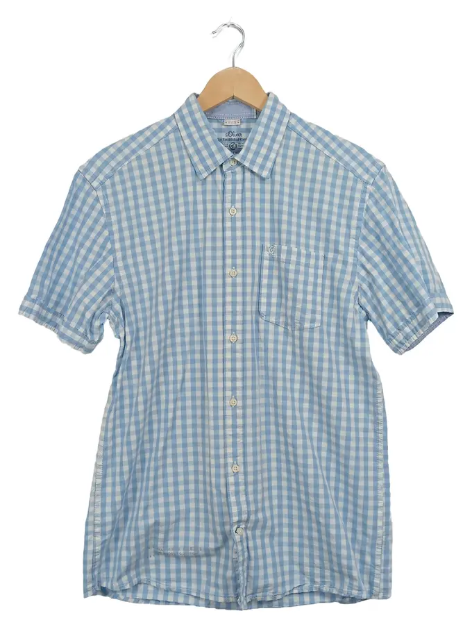 kariertes Kurzarmhemd Herren Gr. 48/M Blau Business Baumwolle
