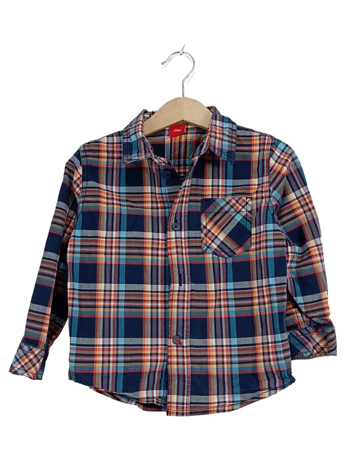 Karohemd Jungen Gr. 92/98 Langarm Blau Kariert Freizeithemd