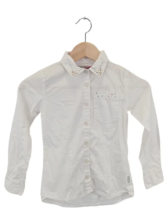 Kinder Bluse Gr. 128 Weiß Pailletten Klassisch Preppy Hemdbluse