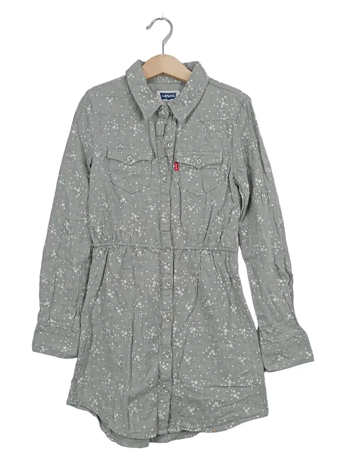 Kinder Blusenkleid Gr. 8/128 Grau Sterne Casual Baumwolle
