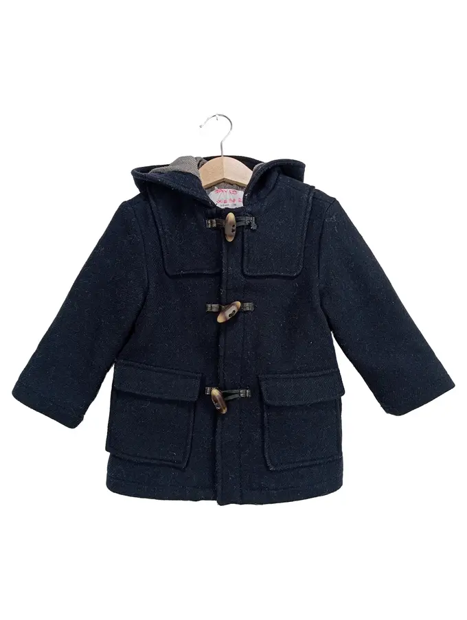 Kinder Dufflecoat Blau Gr. 98 Wolle Kapuze Winterjacke