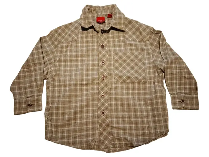 Kinder Freizeithemd Gr. 92 Braun Kariert Langarm Baumwolle Casual