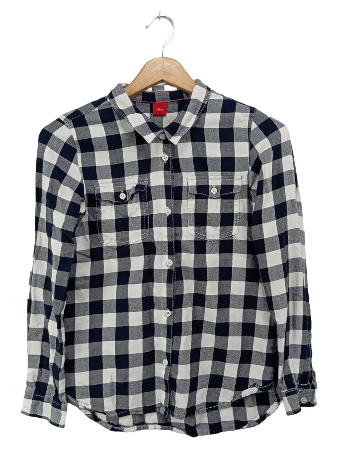 Kinder Hemdbluse Gr. 152 Blau Kariert Langarm Baumwolle Klassisch