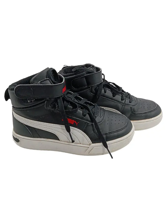 Kinder High Top Sneaker Gr. 34 Schwarz Weiß Rot Leder Klettverschluss