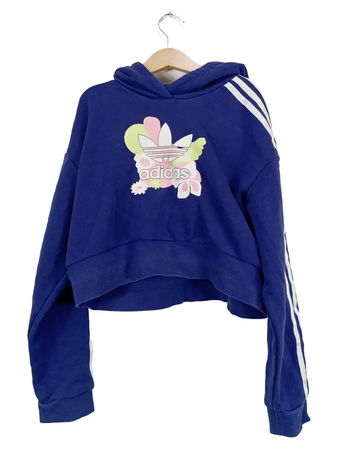 Kinder Hoodie Pullover Gr. 146 Blau Sportlich Blumenmuster Kapuze