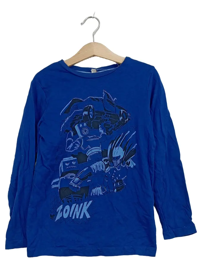 Kinder Jungen Langarmshirt Gr. 116/122 Blau Roboter Print