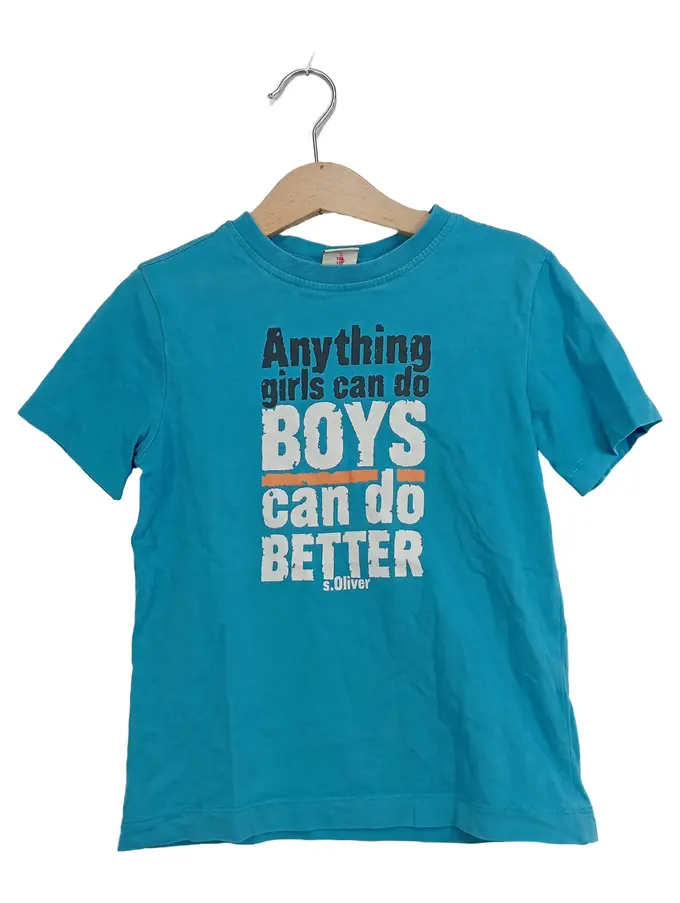 Kinder Jungen T-Shirt Blau Gr. 104/110 mit Slogan Kurzarm