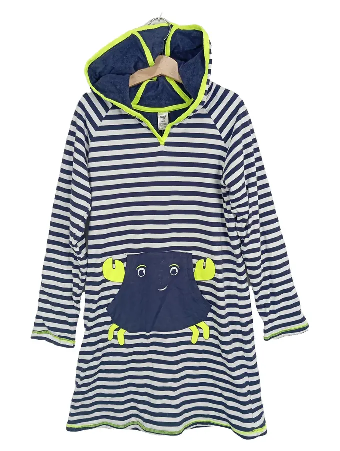 Kinder Kapuzenkleid Strandkleid Krabbe Gr. 134/140 Blau Weiß Gestreift