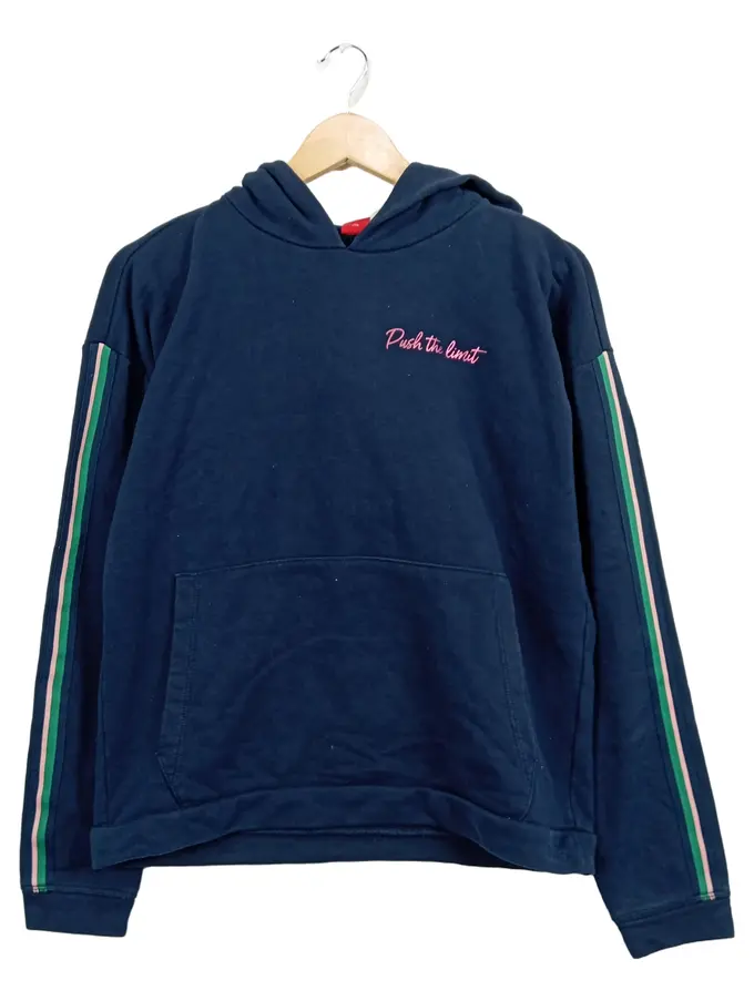 Kinder Kapuzenpullover Blau Gr. 176 Casual Hoodie mit Aufdruck Streifen