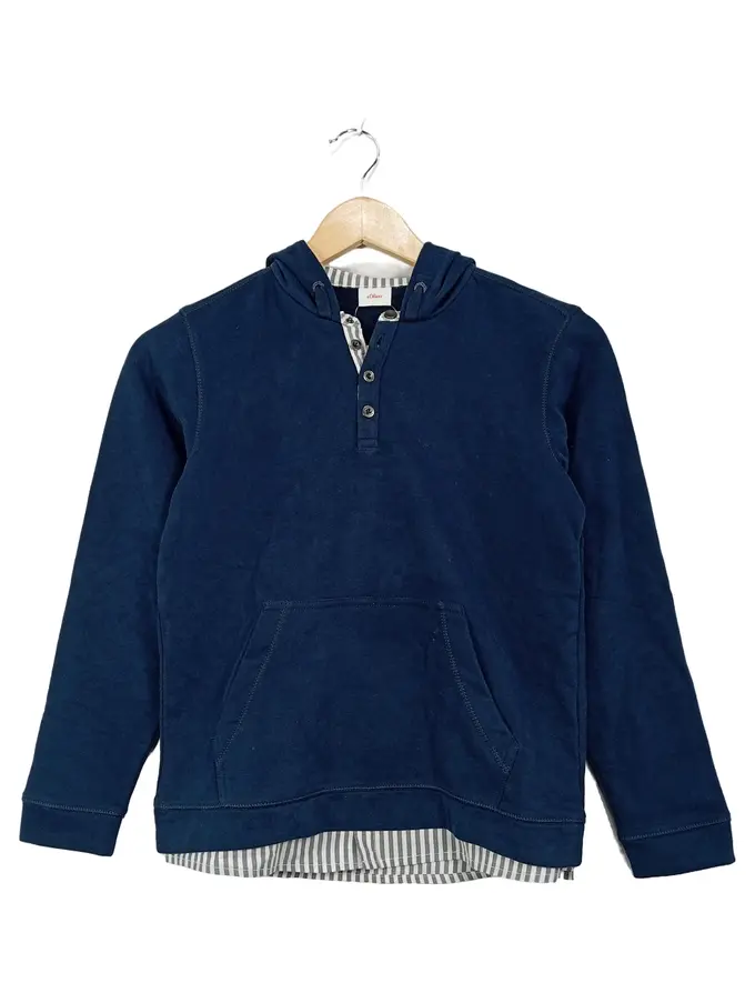 Kinder Kapuzenpullover Gr. 140 Blau Uni Hoodie Baumwolle Freizeit