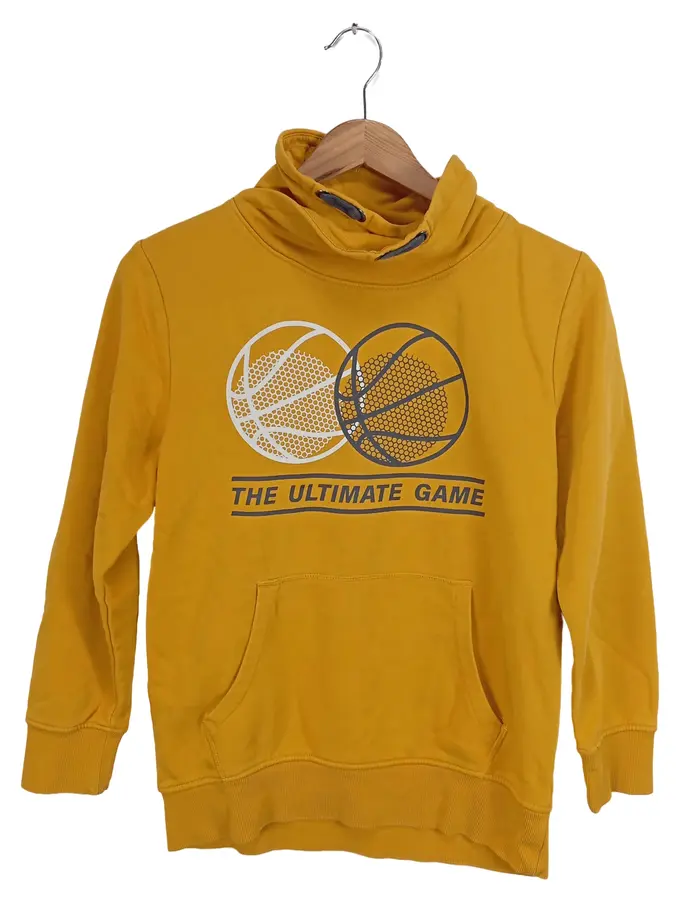 Kinder Kapuzenpullover Hoodie Gelb Gr. 146-152 Basketball Print Casual
