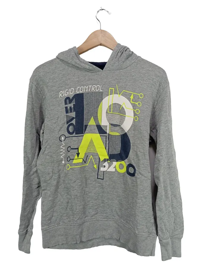 Kinder Kapuzenpullover Hoodie Gr. 158 Grau Grafik Print Baumwolle